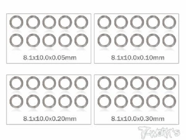 8mm Shim Washer Set – 10pcs Each 0.05/0.1/0.2/0.3mm
