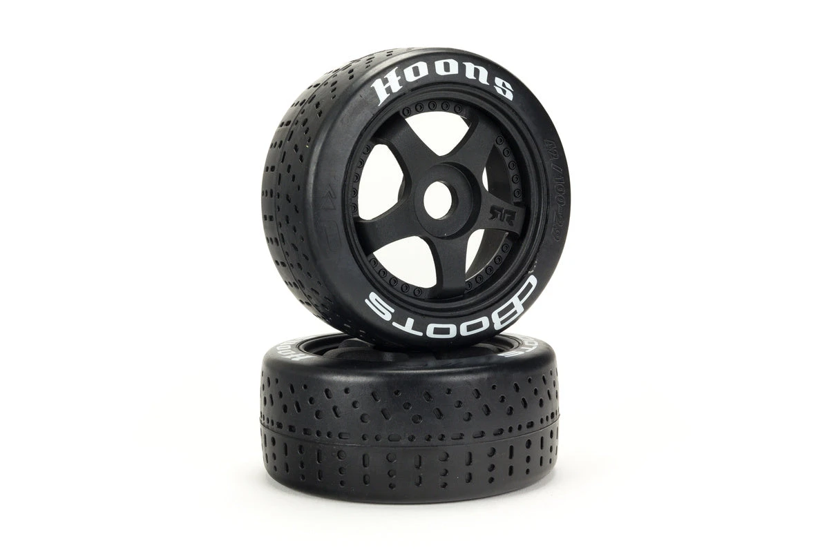 2 x Black Five Spoke Wheels with pre-glued dBoots Hoons tires