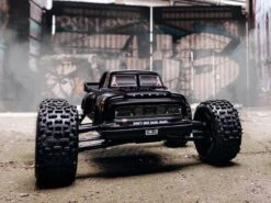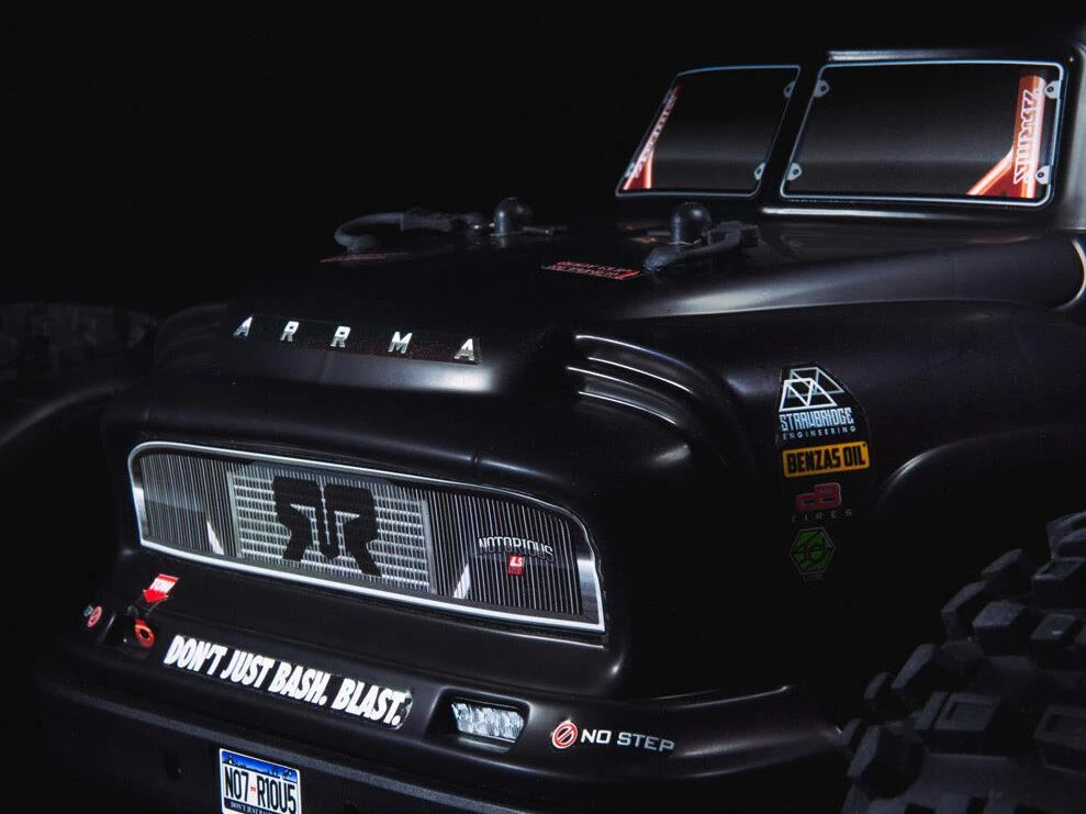 Beneath its 1950s “Real Steel” body, the 1/8 scale NOTORIOUST 6S BLX 4WD has an ARRMA® tough design that’s ideal for wheelie-popping, back-flipping stunts – now made even easier with a Spektrum SLT3 radio, dual protocol receiver, Smart ESC and more.