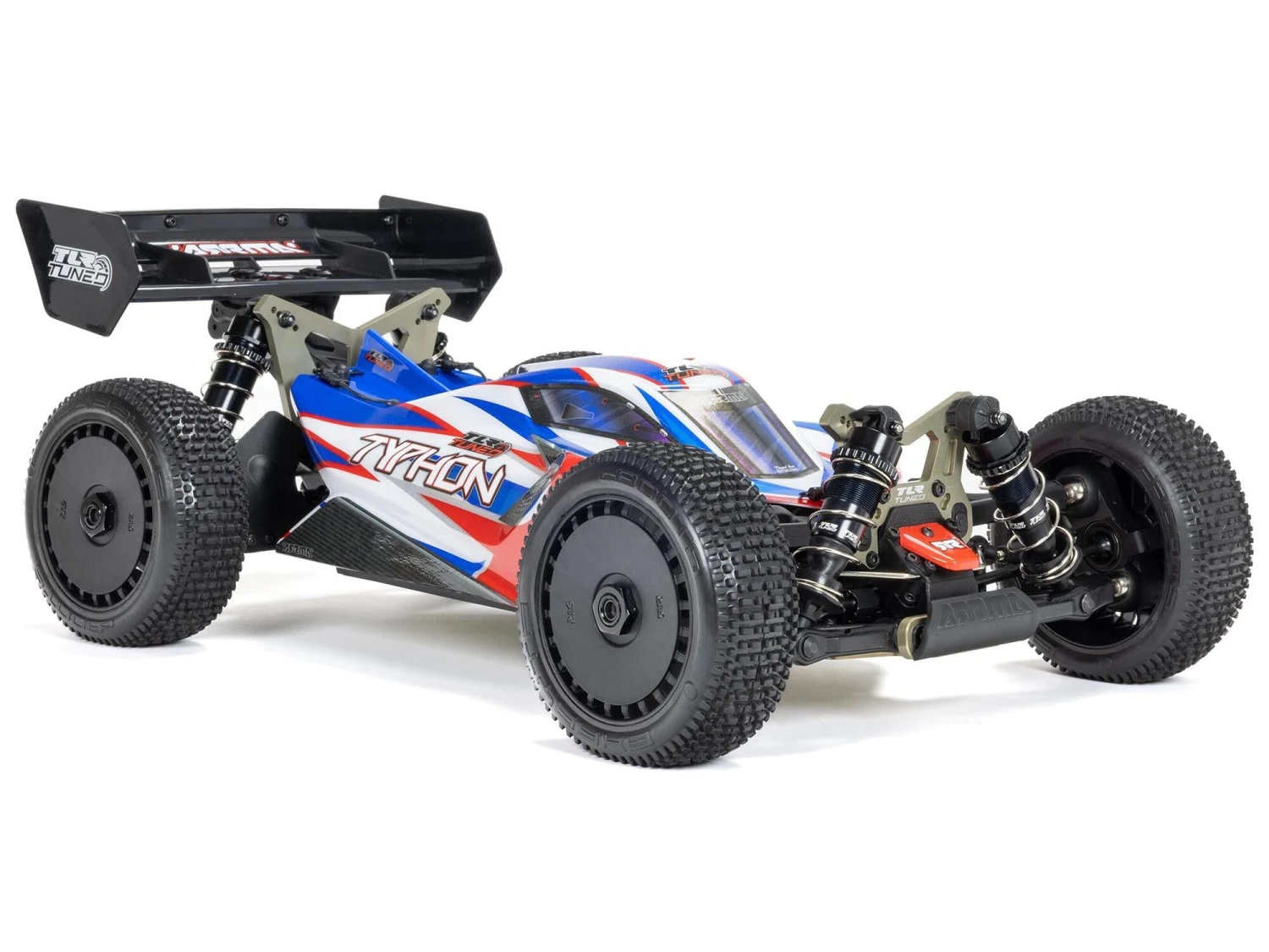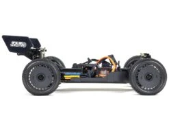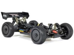 Loaded with upgrades to improve durability and handling, the TLR Tuned TYPHON 1/8 4WD Race Buggy adds chassis tuning and racing capabilities to the top-of-the-line ARRMA bash platform – as well as RTR convenience and proven Spektrum electronics.