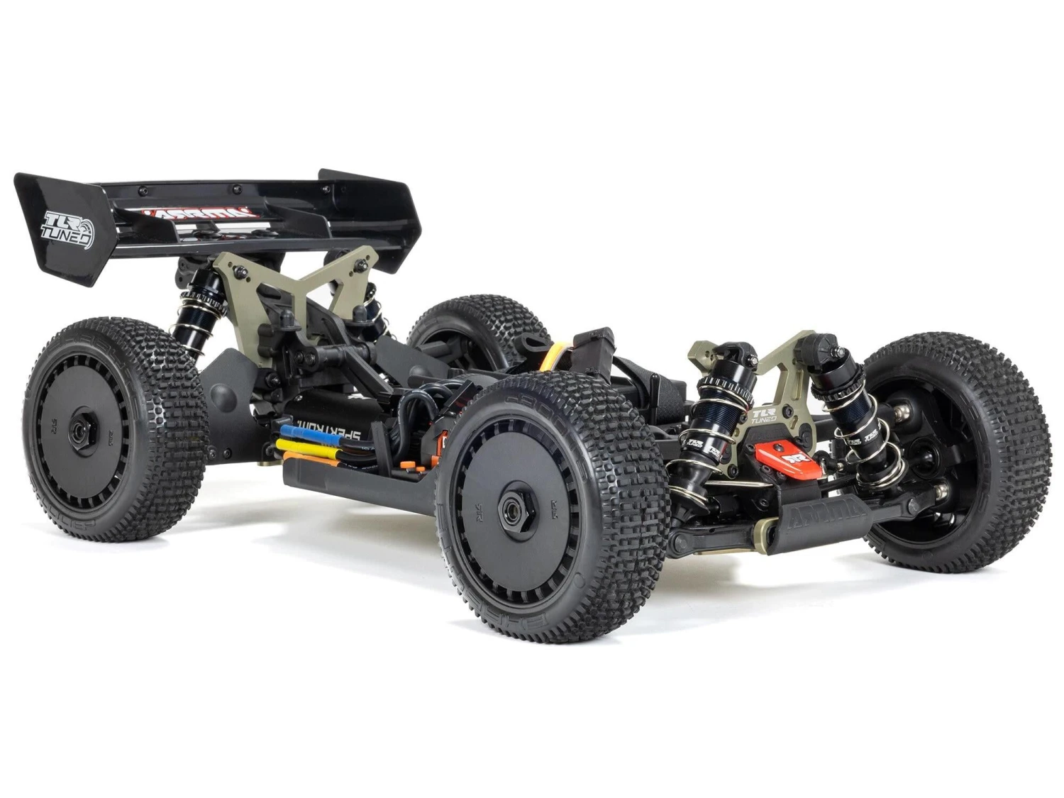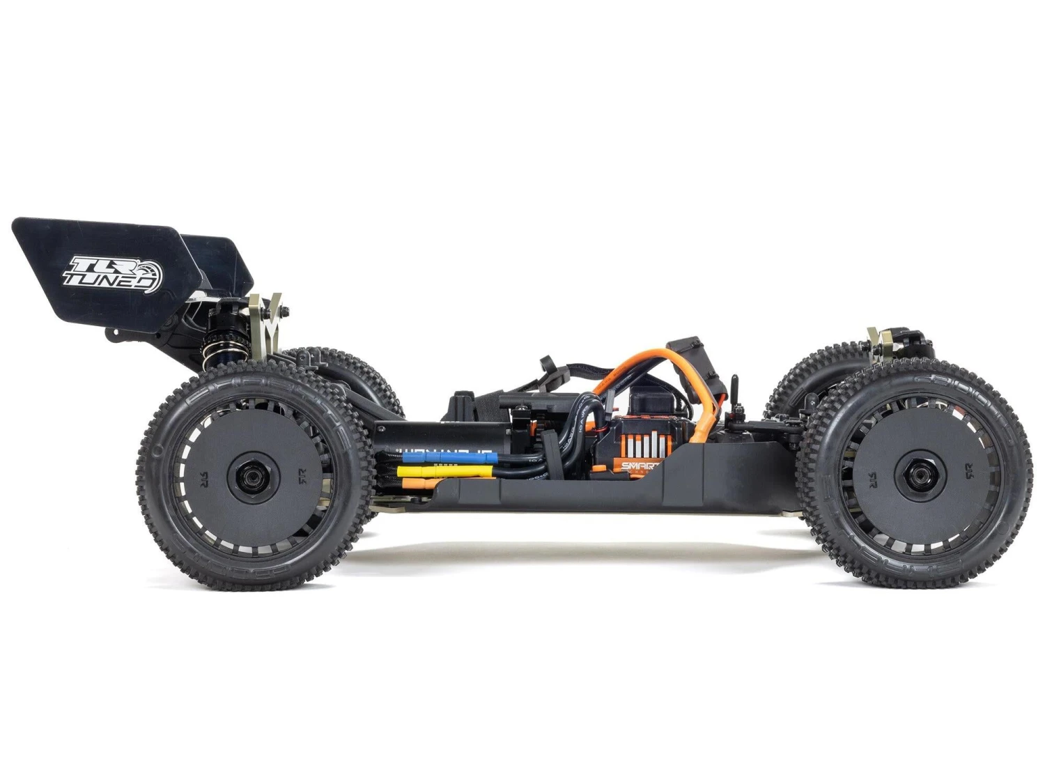 The ultimate 1/8 scale ARRMA buggy out of the box, with many laser-etched TLR Tuned parts.