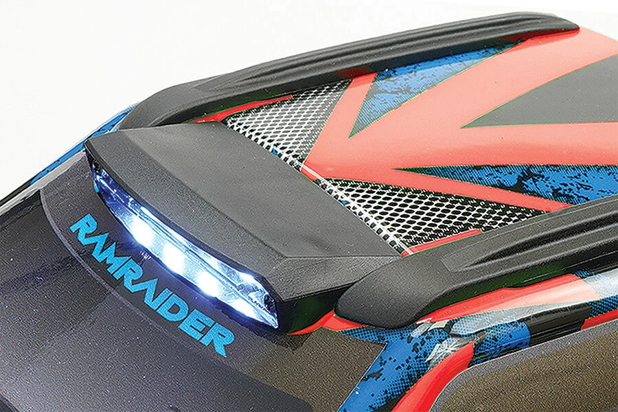 Oil filled aluminium shock absorbers along with a raised high clearance main chassis, with aluminium front and rear skid plates glide over most terrain effortlessly. Should you take a tumble, shock absorbing bumpers and moulded body roof and tail skid bar rails help protect from heavy damage when possible.