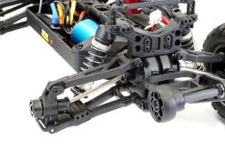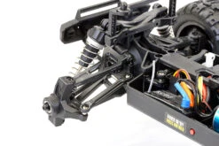 With a 3800kv brushless motor hooked up to a 7.4v 1000mAh 2S lipo battery the Tracer brushless really puts to use its rear mounted wheelie bar. Metal rear dogbones are included for extra durability along with new rear upper suspension links for added reliability under power.
