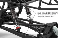 The GOM (translates to “Bear”) features a lightweight, extremely rigid tube chassis that not only looks extremely scale, but protects against impact. The steering servo is mounted to the chassis, and bump steer has been minimized to provide the best possible steering performance. The dustproof receiver box and easy access battery door provide plenty of space for your components. The GOM’s front weight balance is designed to increase traction to the front wheels, improving climbing on steep angles and minimizing roll-overs.