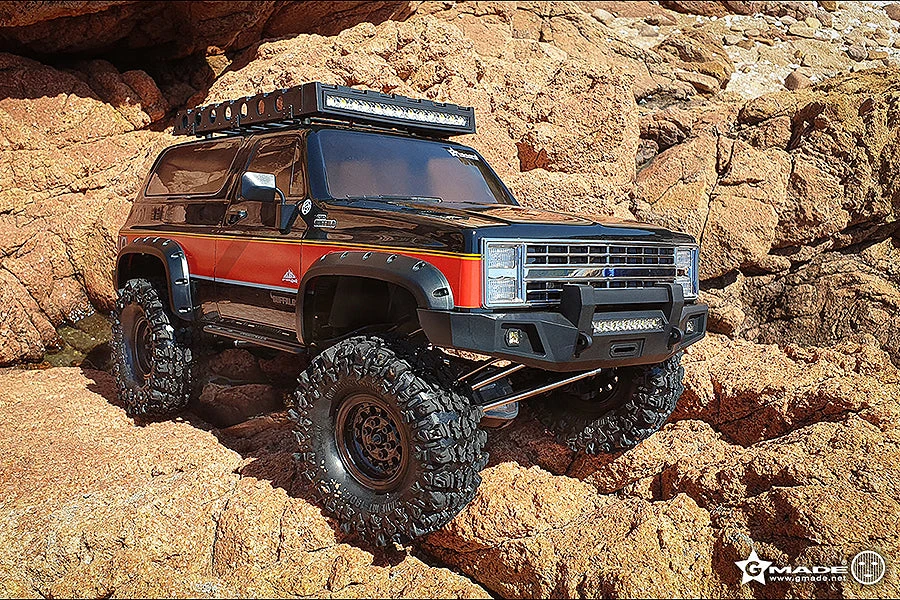 To add realism details it includes frontgrille, light bucket, side mirrors, wipers, door handles, overfenders and a roof rack & LED light bar so you can tune into a realistic off-road vehicle to matches the concept of off-road adventure.