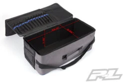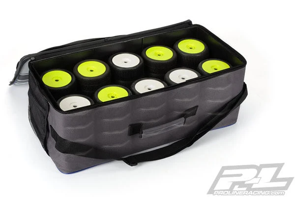 This multi-purpose bag will hold a bunch of tires, tools, chargers, batteries or basically anything you need to take you to the track, all while still being small enough to easily fit in the trunk of your car. The Track Bag features a 13 slot Tool Pouch and 3 see through mesh pouches for any extra tools, glue or hardware that you need while at the track and measures 23” x 11” x 8”.