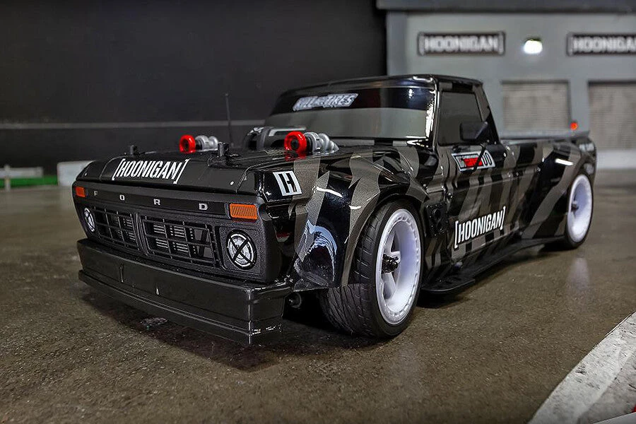 Team Associated is excited to partner with Hoonigan® to bring you their world-famous Hoonitruck in radio-control form. Built on an all new Apex2 chassis, the Team Associated Hoonigan® Hoonitruck is a tire-slaying beast!