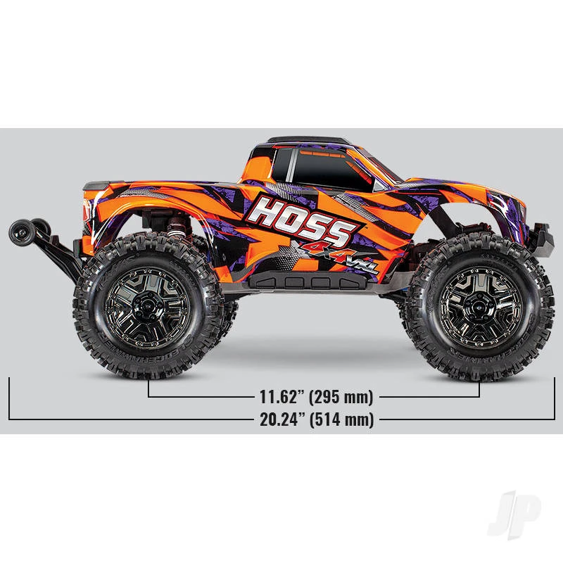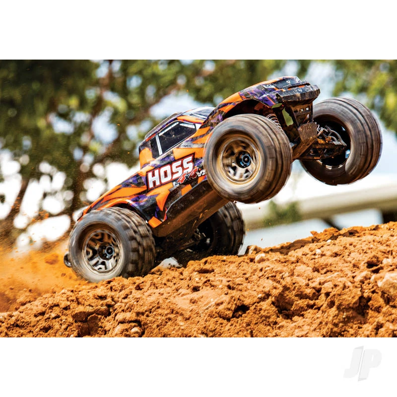 Hoss 4X4 VXL: 1/10 Scale 4X4 Monster Truck, fully-assembled, waterproof electronics, Ready-To-Race, with TQi 2.4GHz 2-channel radio system, Traxxas Stability Management, VXL-3s speed control, Velineon 540XL brushless motor, and clipless painted ProGraphix body. Requires: battery and charger.